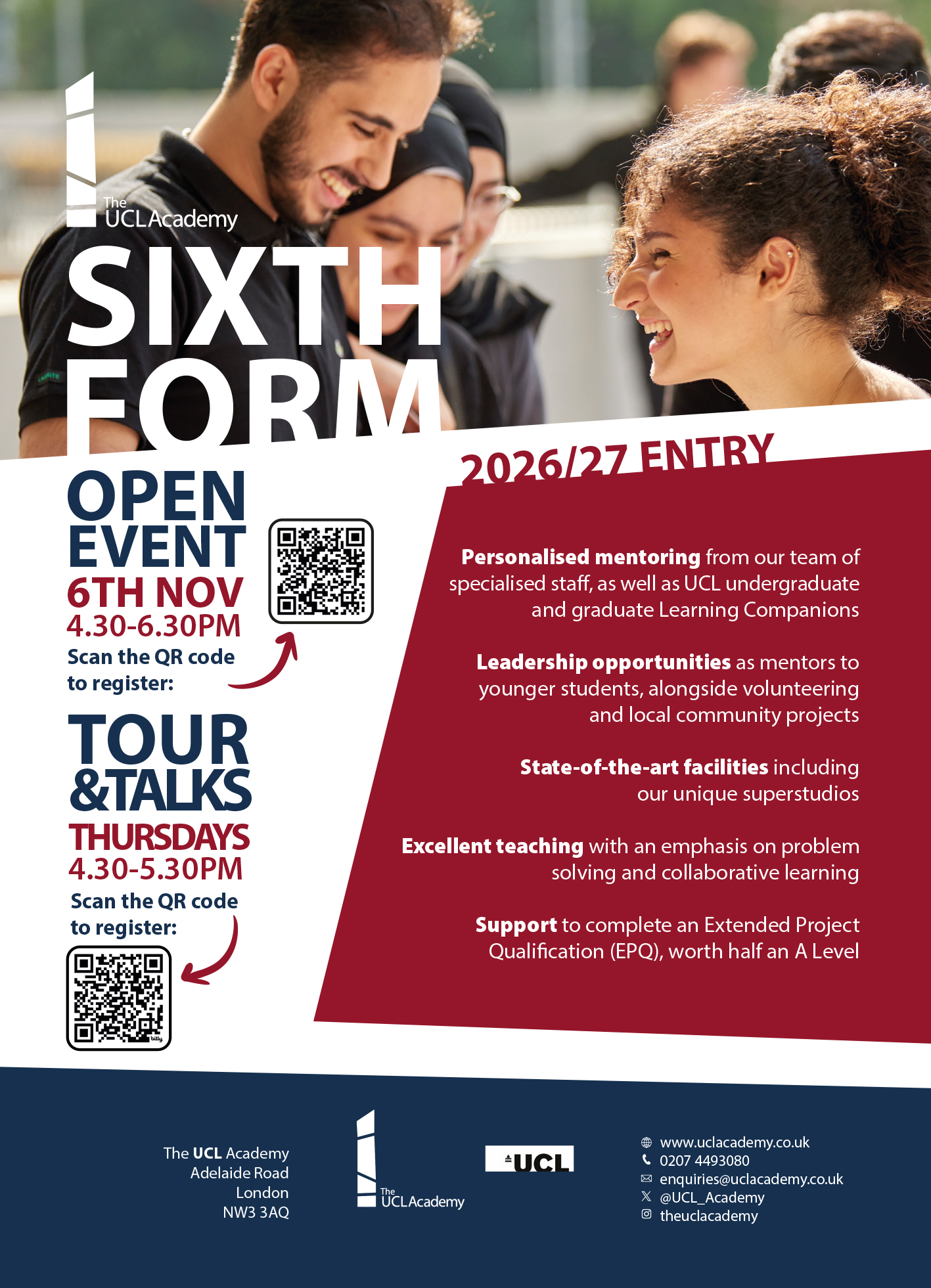 - For The UCL Academy’s Sixth Form Admissions Policy for 2025/26 click here
