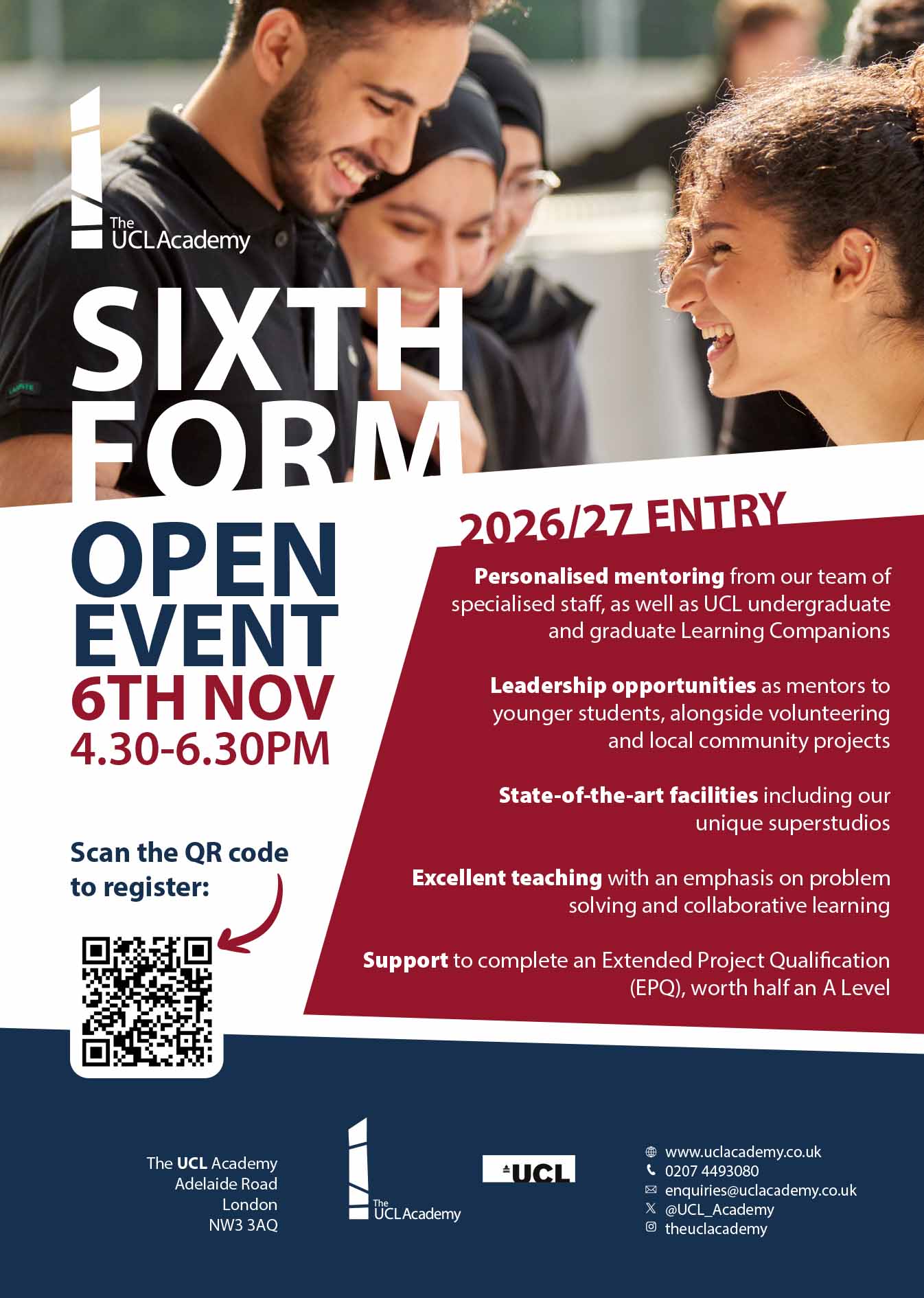 Sixth Form Tour + TalksIf you are unable to attend our Open Evening, or simply want to visit us more than once, then sign up for one of these events. Running most Thursdays, 4.30pm-5.30pm. Please click here to sign up. |